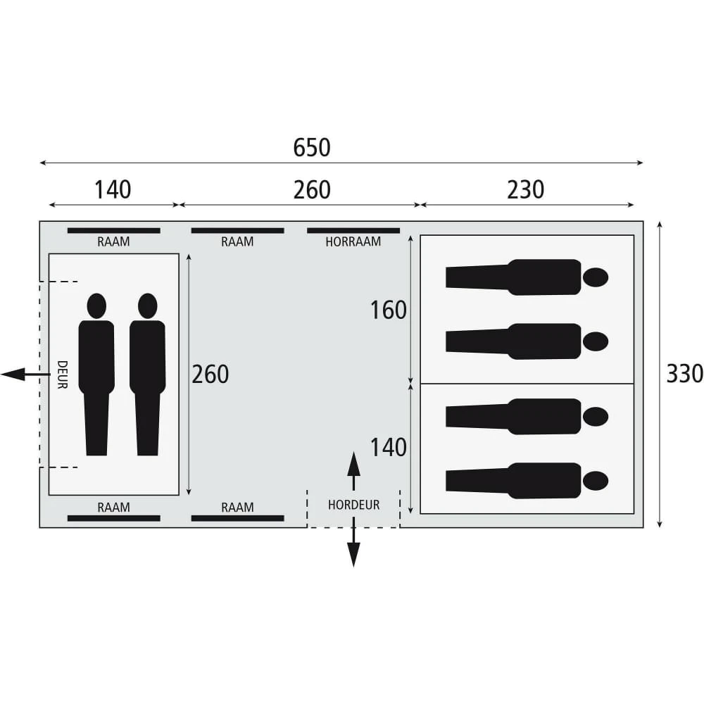 De Porto Grande 650 RSTC tunneltent heeft een vis-à-vis indeling en biedt ruimte voor maximaal 6 personen. De tent heeft een stahoogte van 210 cm en is voorzien van 2 ruime slaapcabines die goed donker zijn voor een optimaal slaapcomfort. Deze binnentent is voorzien van een wegritsbare scheidingswand zodat deze flexibel in te richten valt. De tunneltent is voorzien van een horrengaasdeur en horrengaas aan de achterkant voor extra ventilatie. Zo heb je verminderde kans op vervelende insecten tijdens je verblijf op de camping.