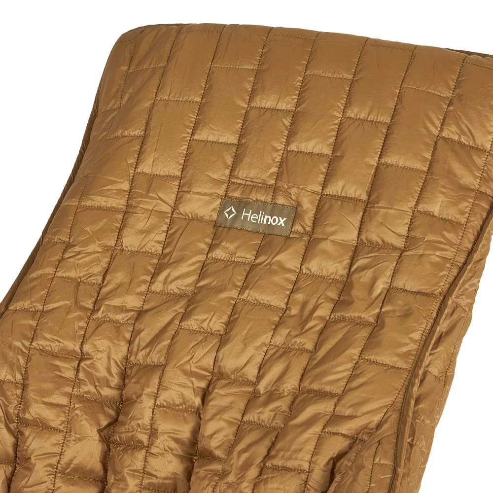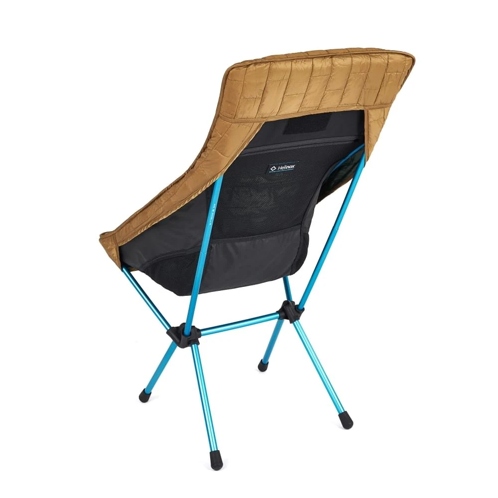 Omdat de Sunset Chair bij koud weer nogal wat warmte verliest aan de achterkant hebben ze bij Helinox de Seat Warmer bedacht. Deze hoes van polyester trek je eenvoudig over de stoel heen en binnen een paar seconden biedt hij bescherming tegen de kou. De Seat Warmer heeft een synthetische vulling die niet alleen warmte levert maar gelijk ook een extra stukje demping biedt. Het slimme van deze Seat Warmer is dat hij kan worden gedraaid, aan de ene kant effen beige en aan de andere kant een stijlvolle groen kleur. Zo heb je zelfs in de winter een warme kont en rug! En ja dan zit je toch wat lekkerder in de stoel.