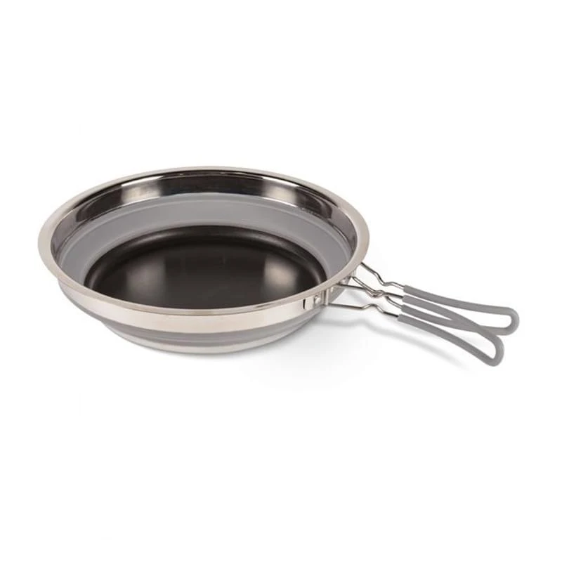 Deze opvouwbare koekenpan van Kampa is ideaal voor iedereen met gebruik aan opbergruimte in de keuken of onderweg. Deze pan is namelijk gemaakt van RVS en siliconen (hittebestendig, smaakloos, geurloos) en kan hierdoor opgevouwen worden. Dit scheelt weer wat ruimte in de kast. De pan wordt geleverd met anti-aanbaklaag en geïsoleerde handvaten.
