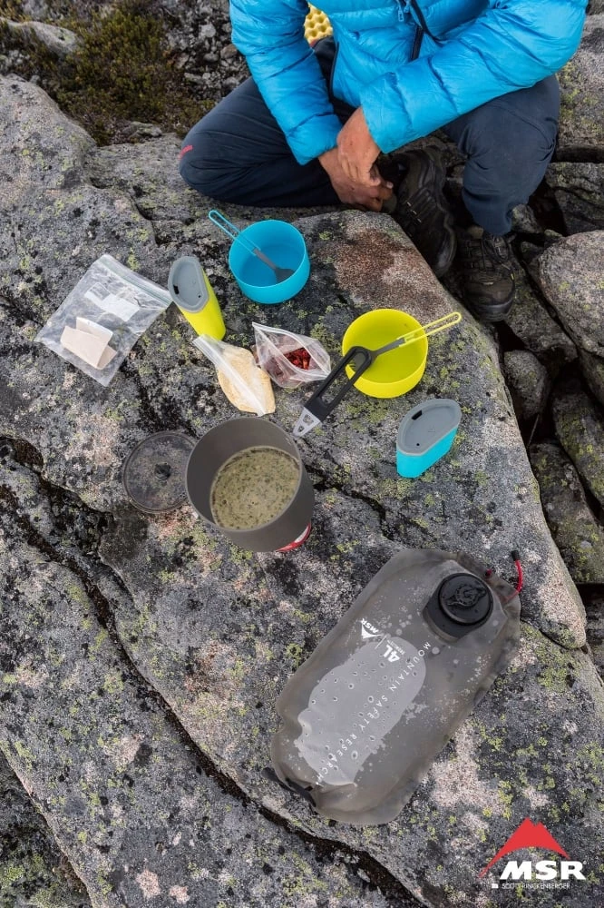 De bekers die er bij zitten zijn geïsoleerd. Zo blijven warme dranken beter warm en zal je niet snel je handen branden. Deze bekers zijn ook groot genoeg om een brander als de PocketRocket op te bergen. Het enige wat je dan nog buiten het setje om op moet bergen is de brandstof.