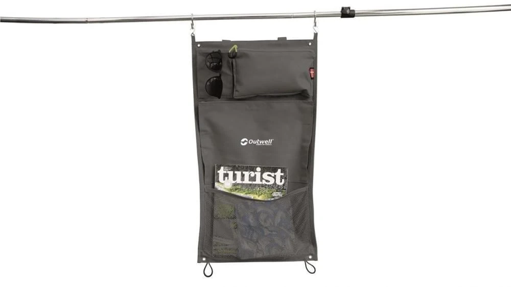 Door alleen gebruik te maken van de haken aan de bovenkant kan de Neat N Tidy Organiser ook opgehangen worden aan een stang van een voortent. Er is een ingenaaide versteviging aan de boven- en onderkant gemaakt waardoor de organiser heel stabiel blijft hangen.